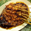 Marinated sliced meats like mutton, beef and chicken are skewered on sticks, then grilled over charcoal fire until perfection, tender meat with slightly charred bits, and finally served in peanut sauce.