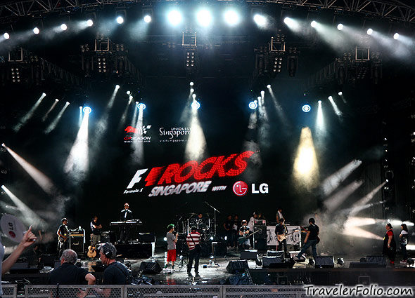 Here is the F1 ROCKS Concert! It’s a rain or shine event and the day was hot and humid. Fortunately, no rain. The band on the stage was Sodagreen who were trying out the sound systems while we waited eagerly for the show to start at 7pm+.