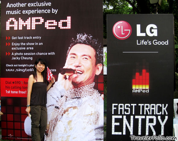 Getting ready for a high-octane evening with Jacky Cheung, the legendary singer from Hong Kong, together with the diva of mandarin pop – A-mei, Sodagreen and Da Mouth after walking up flights of stairs to Fort Canning hill where F1 Rocks is held. We reached around 6.45pm and our tickets allowed us through the fast track entry so there was no queue and it was hassle free with the security. I heard that some die-hard fans were already queuing up at the normal entry since 7am in the morning!