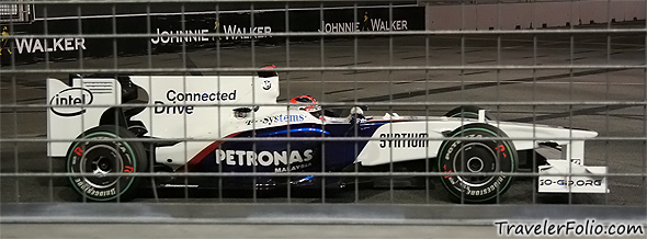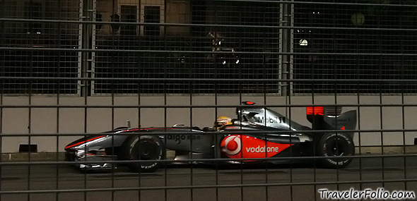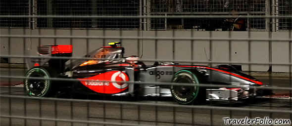 The Marina Bay Street Circuit in Singapore, Saturday, 26 September 2009. McLaren Mercedes whizzed past at full throttle speed!