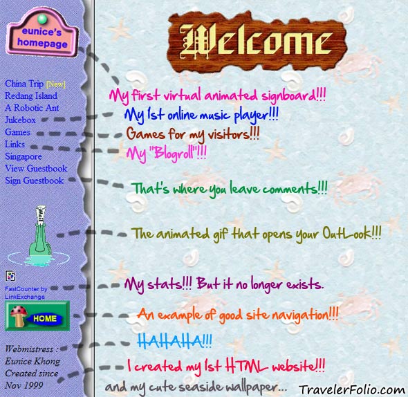 Luckily, I got this news earlier so all the files are already backed up! It’s quite embarrassing to showcase the screenshots of my super old HTML homepage here. Whatever. Just LOL if you want. I just realized that I was already building a small and simple travel site featuring my overseas trips way before TravelerFolio was created! @_@