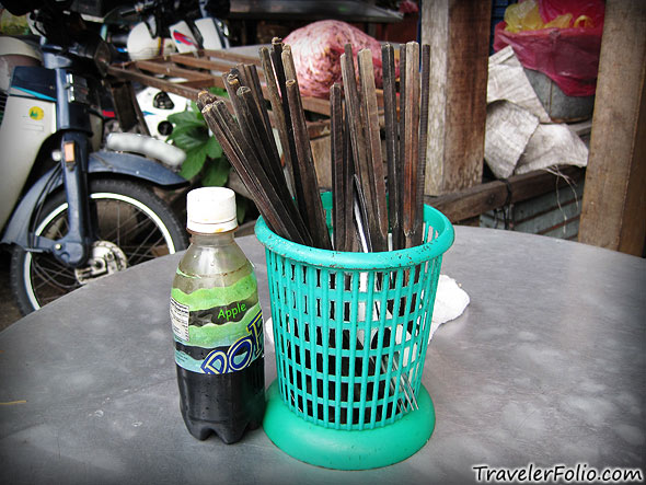 Actually, those wooden chopsticks seemed clean, at least they are not oily and no food bits sticking on them, unlike those dirty and oily plastic chopsticks commonly used in food stalls! :S