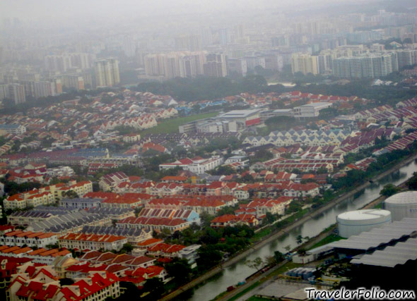 An aerial photo of Singapore on a cloudy day, unfortunately, else the view could be a lot nicer with tall buildings like paper model buildings all over the tiny island. It’s monsoon season now with frequent afternoon showers.