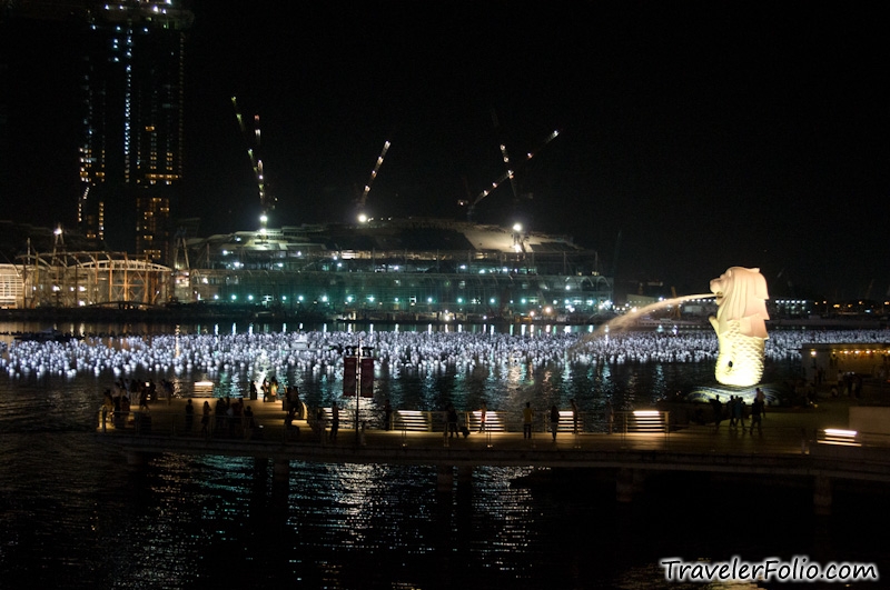 I blogged about this attraction before in Aug 2008 – Merlion Park. Not much difference except you see the tall buildings of the Integrated Casino Resorts in the background that are still under construction. The project is slated to complete in April this year, maybe?