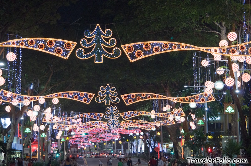 Colourful decorative lights along Orchard road last Christmas.