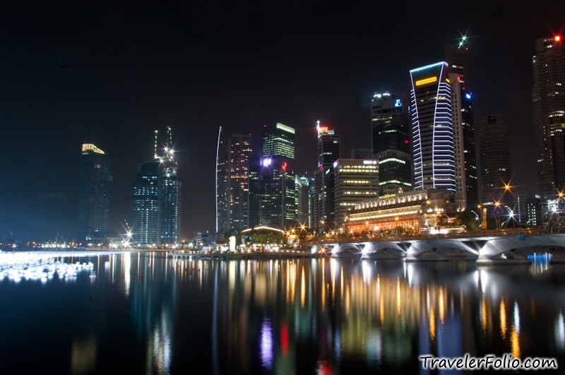 The skyline of Singapore city and the Merlion Park. It should look brighter if we increase in the Exposure Value.