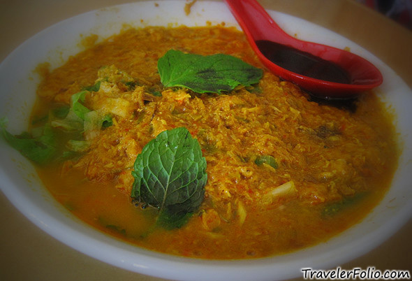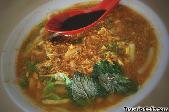 In Singapore, it’s called Penang Laksa. In Penang, you can’t find Penang Laksa as it’s known as Asam Laksa. @_@ If you are at Balik Pulau, try this famous Asam Laksa stall which claims that it’s Best of the Best Balik Pulau Laksa. They serve three kind of Laksa – Asam Laksa, Siam Laksa (aka Lemak Laksa) and Mix Laksa (Asam + Siam!).