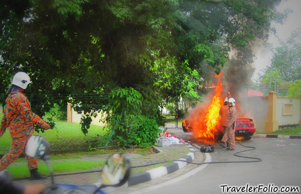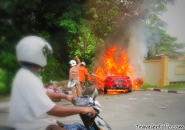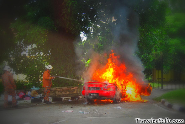 @dongho: ya we drove past that blazing car… I wonder if it would explode!