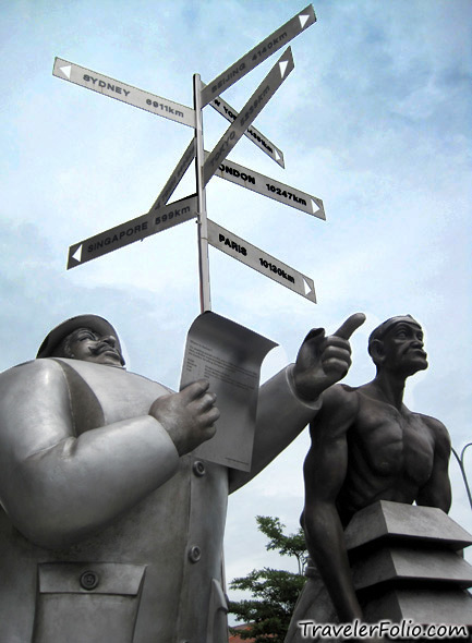 The directional signs are pointing to some big cities, indicating the long distances away from where the statue stands. Singapore is only 599km away.