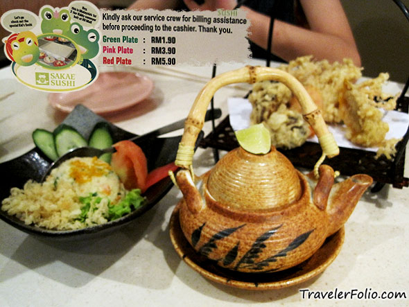 I’m surprised that Sakae Sushi in Malaysia is soooo much cheaper than those Singapore outlets! And the food tastes better. Just to summarize, a green plate costs RM1.90 (in Singapore, I think the cheapest is S$1.90?), a pink plate costs RM3.90 and a red plate costs RM5.90. We never have enough of them.